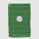 Personalice esta elegante toalla de golf verde con sus iniciales. El diseño tiene una pelota de golf en el centro, sobre un fondo verde con un patrón de clubs de golf. La leyenda en blanco se puede editar para tu lema favorito de golf. O simplemente usar el "Trabajar menos, jugar más golf" por defecto.
