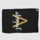 Moderna Toalla de Golf Moderna Monogramada Negra y Girly Gold. Esta toalla de club de golf puede ser personalizada para incluir tu nombre inicial y de pila, y es un regalo perfecto para cumpleaños o soltera. Póngase en contacto con el diseñador para obtener elementos coincidentes.