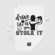 Divertida toalla de golf personalizada con su monograma/iniciales. El texto dice: "Conduce como si lo hubieras robado".