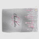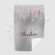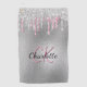 Un falso fondo metálico plateado decorado con goteos en purpurina rosado y falso plateado, con pinturas que gotean. Personalice y agregue un nombre, sus iniciales de monograma. El nombre se escribe con un guión de estilo con letras a mano.