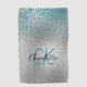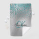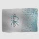Un falso fondo metálico plateado. Decorada con verde azuladas gotas purpurinas falsas de color azul/verde. Personalice y agregue un nombre, sus iniciales de monograma. El nombre se escribe con un guión de estilo con letras a mano.