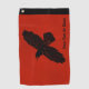 Una silueta simple y negra de un Raven (Corvus corax) sobre una imagen de fondo roja de cuero. La imagen del cuervo ha sido ligeramente "áspera" o "desgastada". Añade tu propio texto.