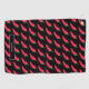 Este diseño de novedad tiene un chile rojo caliente que se repite en un patrón de comida divertida. El texto para añadir tu nombre o monograma, está en blanco, en un bisel de fondo negro.
