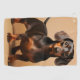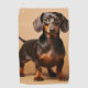 Este retrato de un perro de Dachshund, presentado con un alto grado de realismo, muestra al perro posicionado frente y centro, con ojos brillantes y expresivos, acentuados por las marcas de bronceado del perro. Su abrigo es brillante y elegante, con tonos marrones y tostados de chocolate rico. Los oídos del Dachshund son característicamente largos y dormidos, enmarcando su rostro con una elegancia suave. La cola está en alto con una ligera curva, lo que indica un estado de alerta o curiosidad. El fondo es un tono cálido y neutro que complementa el abrigo del perro y resalta su contorno sin distracción. La iluminación del perro es suave y precisa, proyectando sombras sutiles que enfatizan su construcción muscular y la forma única y alargada típica de la raza. contenido generativo