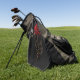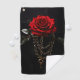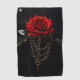 Una rosa roja ensangrentada en cadenas de hierro sobre un fondo negro crea una gloriosa toalla de golf de Gótico.