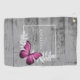 Personalice una toalla única para jugar golf con una toalla de golf personalizada Rustic Rustic de Mariposa Rosa. El diseño de las toallas incluye una mariposa vibrante que descansa sobre un delicado follaje con un espacio para añadir tu nombre a un fondo rústico de madera. Artículos de regalo adicionales disponibles con este diseño así como una variedad de colores.