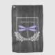 Personalice una toalla única para jugar golf con una toalla de golf personalizada Rustic Dragonfly. El diseño de las toallas incluye una libélula vibrante adornada con un delicado follaje sobre un fondo rústico de madera oscura y gris. Artículos de regalo adicionales disponibles con este diseño así como una variedad de colores.