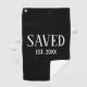 Minimal Saved Established Christian Easter Golf Towel with CUSTOMIZABLE YEAR and classic white caps serif font. Perfect gift for Christians of all ages, and especially during Easter or for a newly saved golfer. Contact me if you're a church or faith-based group and would like extra branding with your logo. Ideal personalized unisex Christian Saved Golf Towel for all ages. Matching gifts available. Also in white.
