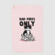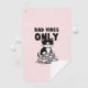 Envía tu lado atrevido y suavizado con esta impresionante toalla de golf con un gato violento rodeado de cráneos. La audaz frase 'Sólo malas vibraciones' agrega un giro rebelde, perfecto para los amantes de los gatos que adoptan una estética oscura y gótica. Este diseño único es ideal para los amantes de combinar el encanto felino con el arte atrevido y creativo.
