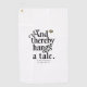 Cada golfista tiene una historia, y nuestra toalla de golf "Y por lo tanto cuelga una historia" está lista para respaldar a la tuya, ¡no importa cuán alta sea! Inspirada en el ingenio de Shakespeare en "As You Like It", esta toalla de golf es la marca perfecta para hilar sus más impresionantes hilos de golf. Esta toalla, elaborada con materiales de calidad superior para mantener su equipo limpio y seco, no es sólo práctica, es un comienzo de conversación. Ya sea que celebres un verdadero agujero en uno o tu mítico albatros, que esta toalla añada un toque de encanto teatral a tus cuentos sobre los verdes.