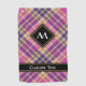Tartán rosa, amarillo dorado y azul. Patrón sin foco. texto personalizado y monograma.