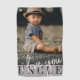Toalla moderna de fotogolf con una sola foto de un niño y "te amo tío" con letras modernas en un fondo gris. Hermoso regalo para tío.