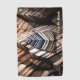 Armamento de alta tecnología del Pleistoceno. Dos imágenes tridimensionales de color tierra, ambas basadas en las mismas fórmulas, y ambas ligeramente alteradas, combinadas para representar un punto primitivo de lanza o punta de flecha de la era del hielo superpuesto sobre una superficie rocosa. Añade tu propio texto.