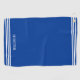 Azul tres rayas y texto de caza sobre azul real. El texto se puede personalizar. Toalla moderna y elegante.