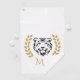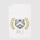 Personalized golf towel featuring a bold Tiger design encircled by elegant gold laurels, symbolizing strength and achievement. Perfect as a gift for golf enthusiasts or as a stylish addition to your own gear.
