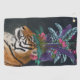 Tigre caliente 2 de Fab Funky. Un tigre descansa con flores tropicales y vegetación sobre su cabeza como una cabecera.| 192437GG