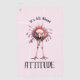 Toalla de golf Flamingo Funny Attitude. Destacar en el campo con este divertidísimo y llamativo equipo de golf flamingo! Con un flamingo peculiar y desenfadado con plumas salvajes y una expresión feroz, este gráfico grita confianza y asco. Las palabras "Todo se trata de ACTITUD" se muestran con estilo alrededor del flamingo. Perfecto para mostrar una personalidad fuerte en el curso o en el club, este diseño hace un gran regalo de golf para los amantes del flamingo, los entusiastas del humor de golf y cualquier jugador que acepte el juego con confianza.