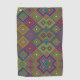 Towel with a vibrant geometric pattern featuring colorful diamond shapes. The design includes shades of blue, green, red, yellow, and purple, creating a lively, energetic tone.