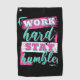 Estilo retro colorido, motivación gruesa "Trabajar duro permanecer humilde" diseño de texto en colores rosa, azul y blanco