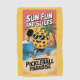 SUN FUN AND SLICES es el audaz y lúdico titular que aparece en esta vibrante toalla, con PICKLEBALL PARADISE impreso debajo para completar el tema tropical. El diseño muestra una alegre mascota de pickleball con gafas de sol, una camisa negra, pantalones cortos grises y zapatillas verdes, que cruza una playa soleada con un remo en la mano. Una puesta de sol radiante, palmeras, olas oceánicas y pájaros voladores crean un ambiente vacacional animado. Ideal para cualquier club, equipo o torneo de pickleball que se organice en un complejo turístico o destino de playa. Esta gran toalla de playa es un regalo perfecto para cualquier jugador de pickleballer, abanico, entrenador o jugador que ame equipos elegantes, divertidos y deportivos. Ya sea que cenes en la cocina o que te relajes después de un partido, esta toalla le da vida al espíritu del paraíso del pickleball.