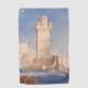 Rodas. Joseph Mallord William Turner (1775 - 1851). Un bonito paisaje marino en tonos rosa y azul. En primer plano hay barcos y barcos en la bahía, cerca de las murallas de la ciudad. en el centro, hay una torre alta. Al fondo, una ciudad con casas de piedra. Reproducción de obras famosas de imágenes artísticas de dominio público.