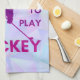 Toalla de hockey púrpura personalizada para cuchillas secas - un regalo práctico para los jugadores de hockey! ¡Es esencial secar las hojas después de la práctica! Toalla de cocina muy absorbente.Colores: morado a rosa sobre fondo de cristal.Diseño: "Nacido para jugar hockey" + silueta de un jugador de hockey + personalizar con el nombre del patinador.
