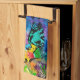 Mi color de agua original cosechó e imprimió en una toalla de mano que ofrecía el sistema del arbusto de Omphalea en un fondo brillante de la puesta del sol visitado por una polilla de la puesta del sol (Chrysiridia Rhipheus), que son ambo indígena a Madagascar, África.
