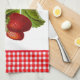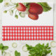 Dale un toque a tu decoración de cocina con esta toalla de gingham roja estilo granja. Esta toalla presenta una acuarela de una planta de fresa con un borde de gingham rojo y blanco. Una toalla alegre para la temporada de verano. Una toalla como esta sería un regalo considerado para estrenar casa para esa persona especial.