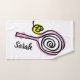 Toalla de mano personalizada para jugadores o entrenadores. Racquet de tenis rosado y diseño de bolas con nombre o presupuesto personalizado. Novedad divertida Cumpleaños regalos para ella; entusiasta del tenis, mejor amiga, mamá, esposa, hermana, doble pareja, el mejor entrenador del mundo, entrenador, chica, compañero de trabajo, jefa, etc. Práctica toalla blanca para una corte durante largos partidos. Accesorios de moda para los aficionados al tenis en todo el mundo. Elegante plantilla de tipografía de guión de pincel.