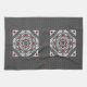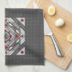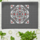 Una mandala cuadrada concéntrica toma la apariencia de un túnel que atrae al espectador con una combinación de líneas anguladas, triángulos y círculos en tonos grises, rojos y blancos para casi crear una ilusión óptica.