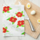 Cocina blanca moderna y elegante o toalla de baño con flores de arte rojo brillante.