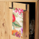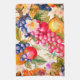Toalla de cocina retro con imágenes de uvas, flores, follaje, naranjas y otras frutas.