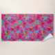 Esta toalla de playa se muestra en una huella tropical de palmeras. Colors Aqua, Hot Pink Personalizar este artículo o compra como está. Imagen de stock