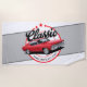 Este es un dibujo de un coche clásico creado con tiza y marcadores con un fondo agregado digitalmente.