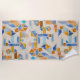 Toalha com arte feita em aquarela com formas geométricas nas cores base, laranja e azul, pintadas de maneira intuitiva e coordenada pra deixar espaços harmônicos entre os formatos, tornando a obra única e agradável aos olhos