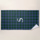 Elegante toalla de playa realizada en el clásico patrón a cuadros tartán Sutherland de color azul y verde de la clan escocesa. Personalice el gran monograma de una letra blanca en el medio para adaptarlo a sus necesidades.