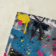 A bold abstract composition built from energetic paint splashes, layered textures and graphic color contrasts in pink, blue and yellow. The chaotic structure and expressive strokes create a modern urban art aesthetic with strong visual impact.