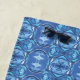 Geometric pattern with an abstract wavy design in blue tones with a molten metal effect inspired by Portuguese tiles.