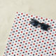 Toalla de playa con puntos de polka en tonos náuticos de rojo y azul sobre blanco.