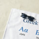 Letras griegas fundas inferiores y superiores con sus nombres. Objeto vectorial con colores personalizados para títulos, letras y nombres de letras. Color de fondo personalizado.