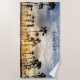 Toalla De Playa Amanecer de palmeras nubladas azules y amarillas