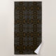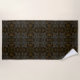 Toalla grande de estilo de playa impresa con un patrón de rastrillado en amarillo dorado cremoso sobre un fondo negro, con un diseño artístico gráfico geométrico simétrico de seis lados y patrón repetido original ilustrado por TheFabricSeal en Zazzle #ZazzleMade https://www.zazzle.com/store/thefabricseal