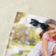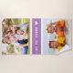 Una moderna toalla de playa cuenta con 2 fotos con el texto "Te quiero, abuela ♥️" sobre una gruesa franja violeta de luz.