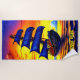 Resumen Barco de vela con estilo Pirata Azul al atardecer - Ver más excelentes toallas de playa en mi tienda.