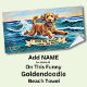 Toalla De Playa Añadir nombre, Goldendoodle Dog aplastando en las