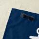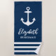 Toalla de playa náutica personalizada con un diseño simple y elegante de rayas costeras en azul marino y blanco con ancla de barco. Personalice el texto del monograma personalizado con un nombre en letra moderna y "Dama de Honor" u otro título de la fiesta de boda.