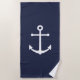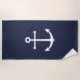 Moderna toalla de playa Minimalista Nautical con ancla blanca sobre fondo azul marino.