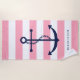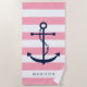 Toalla De Playa Anclaje azul monogramado en franjas rosadas