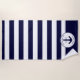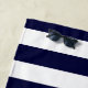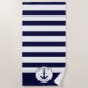 Toalla de playa de anclaje de barcos náuticos azul y blanco con un nombre familiar para personalizar la plantilla.
