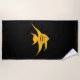 Ahora no hay duda de quién es la toalla cuando marcas tu sitio en la arena o en la silla de la piscina con nuestro exquisitamente vibrante, amarillo dorado, encaje negro, AngelFish de hojas aladas. Es un hermoso ilustracion en una clase, o más bien un Genus, por sí mismo — Pterophyllum scalare — para ser exactos. Para opciones de diseño adicionales, sólo tiene que hacer clic en "Personalizar", ¡y ya está!